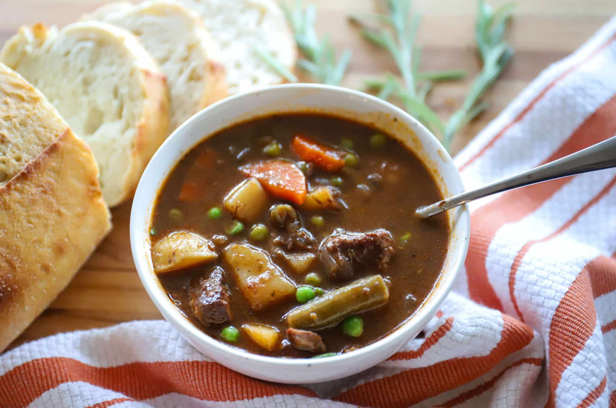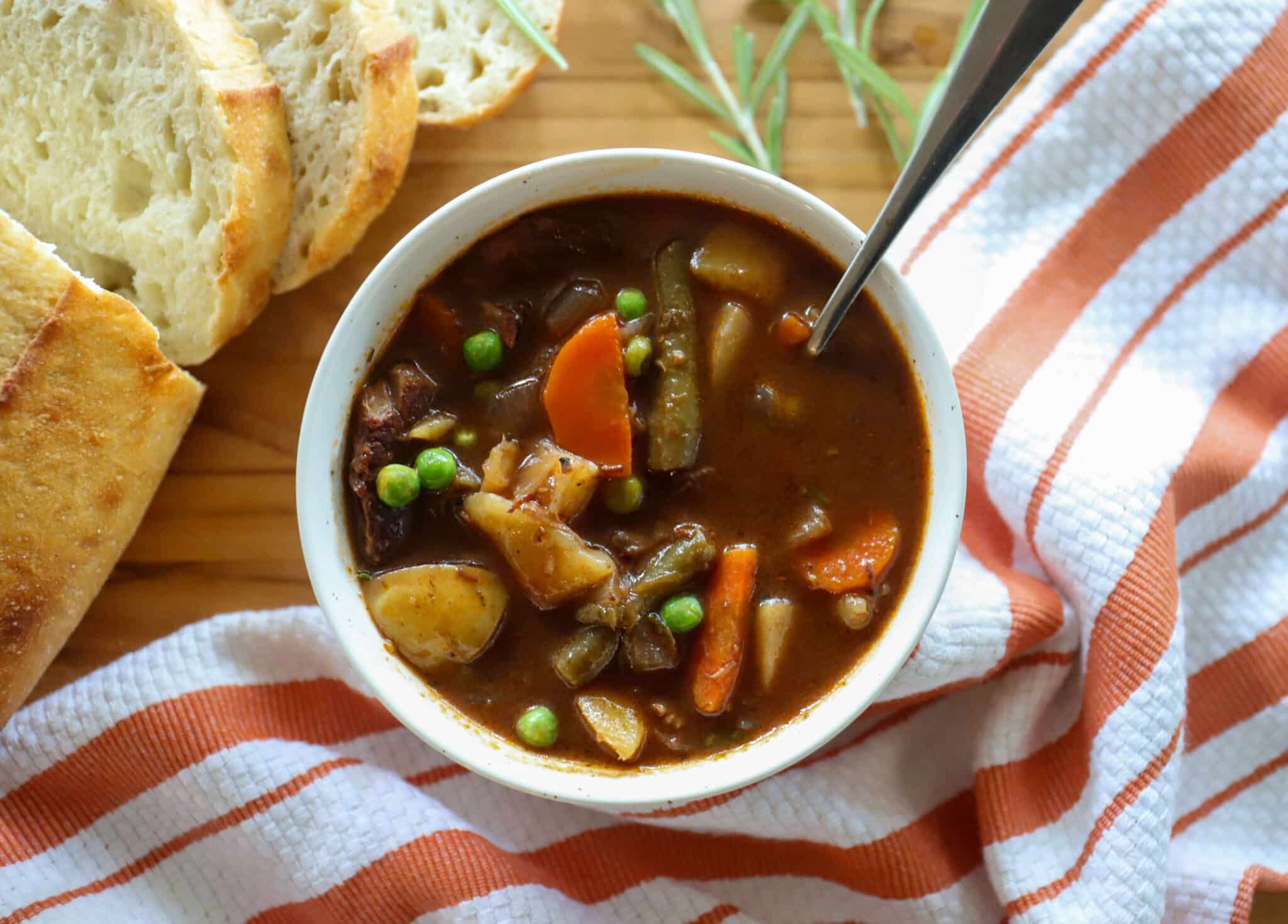 This beef and vegetable stew is a family favorite as soon as the first cold front blows through! With lean, tender chunks of beef, a variety of vegetables and a rich and savory broth, it’s satisfying and comforting. We love to serve the stew over wide eggs noodles, or alongside warm fresh bread.